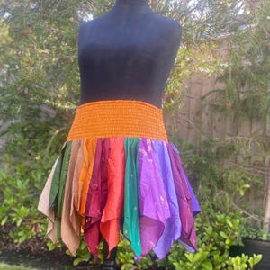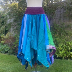 Dress, Skirt or Top- Adult Fairy Dress - Repurposed Sari - Smocked Elasticated Panel - Adjustable shoulder tie straps - Handkerchief Hem