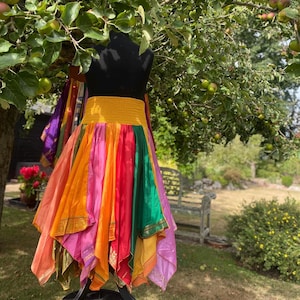 Made using handpicked vintage saris, reusing beautiful materials and creating a unique skirt.