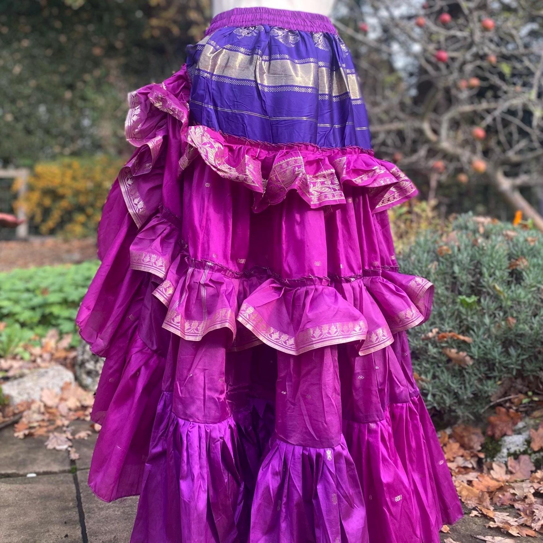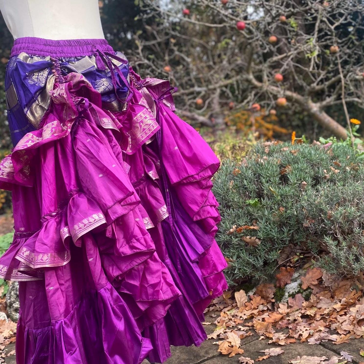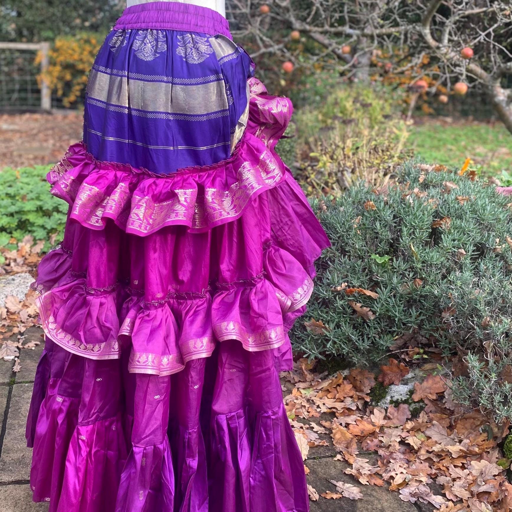 Made using handpicked vintage saris, reusing beautiful materials and creating a unique skirt.