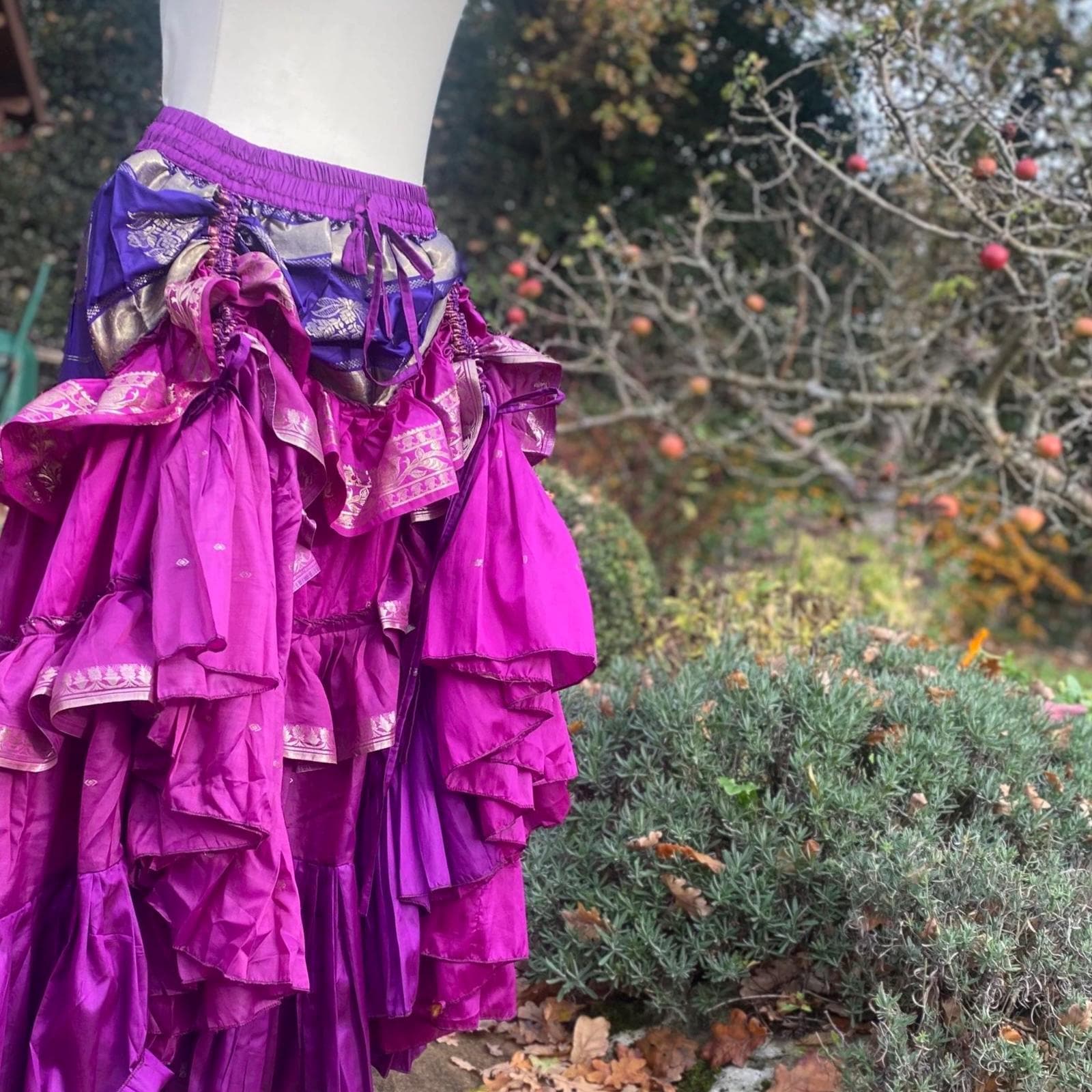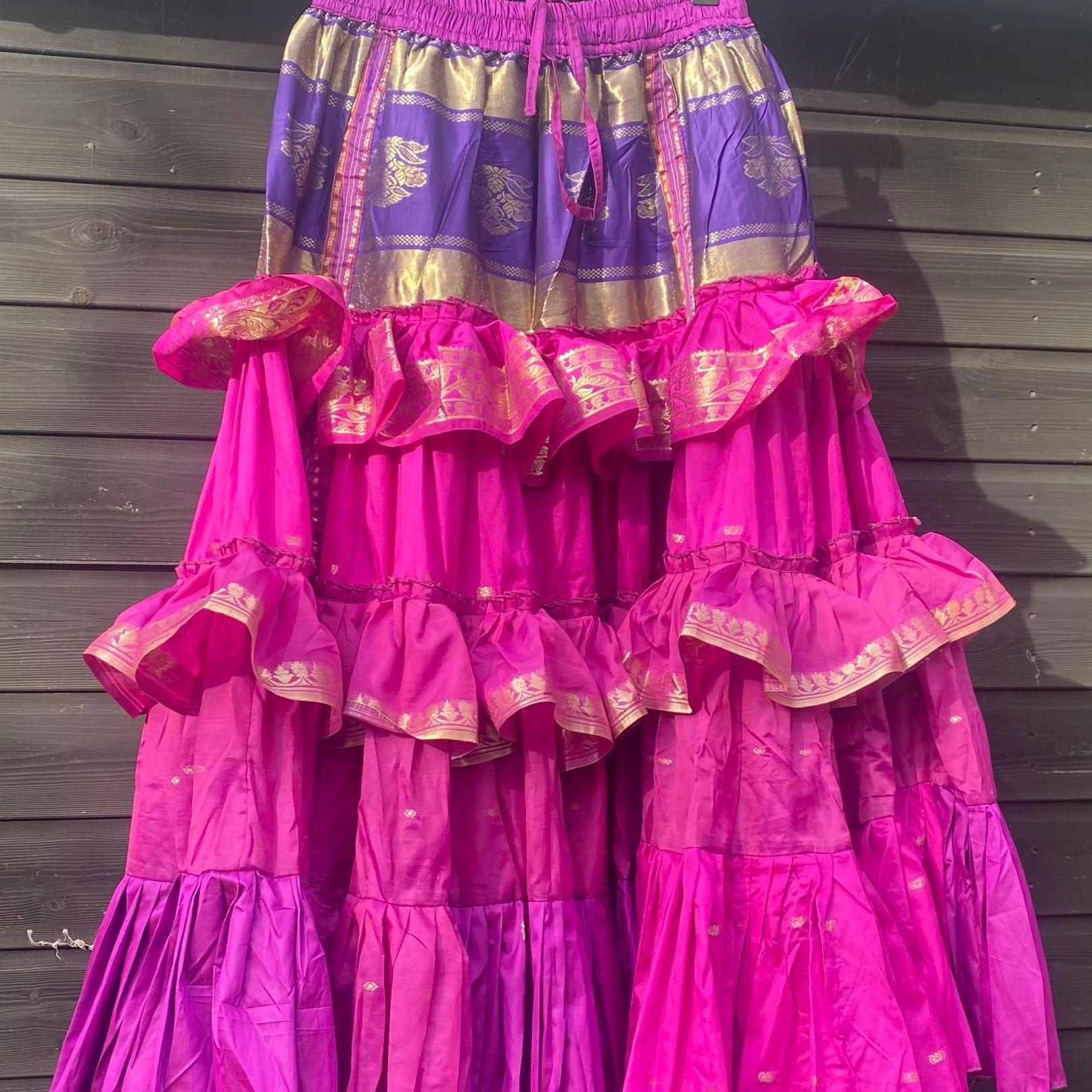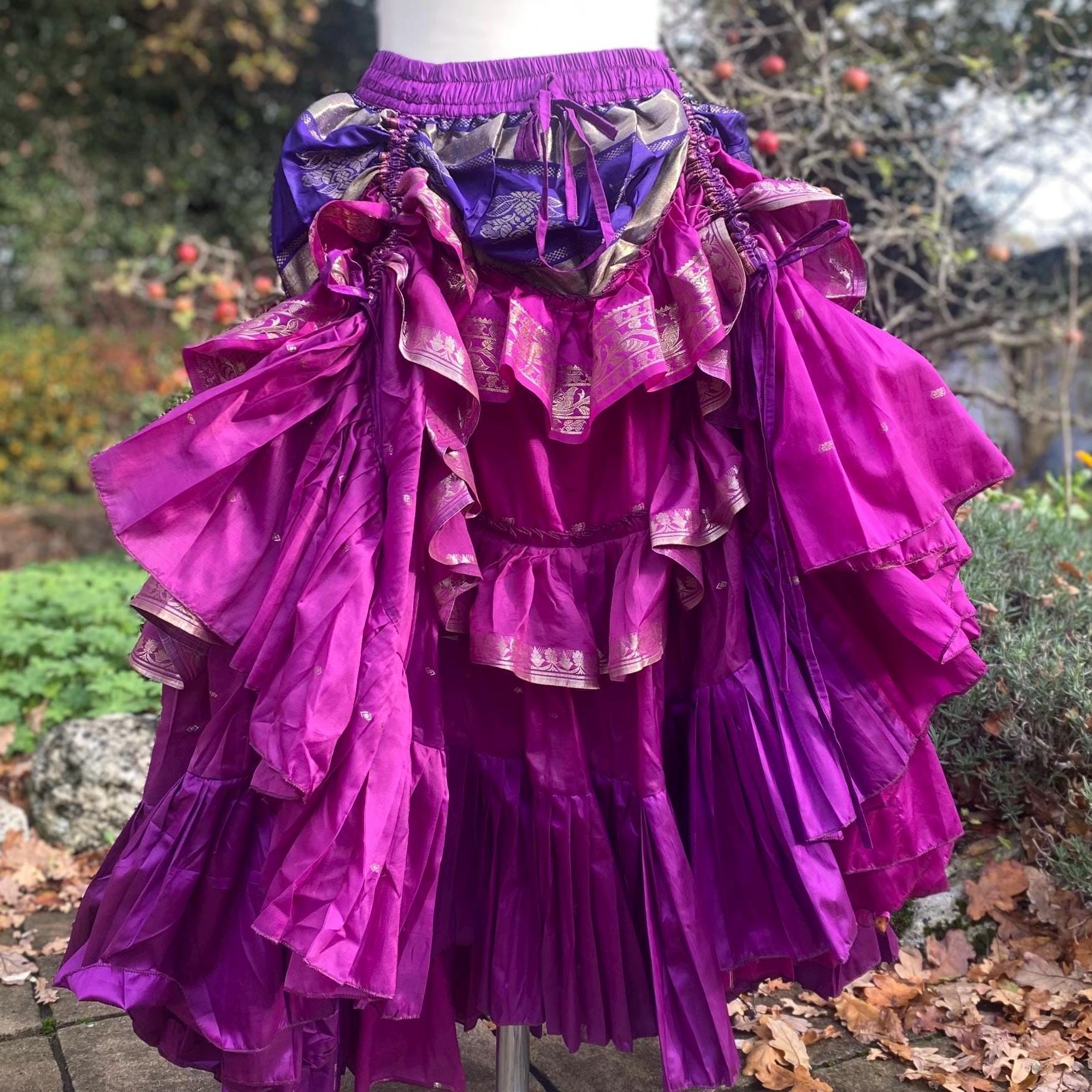 Made using handpicked vintage saris, reusing beautiful materials and creating a unique skirt.