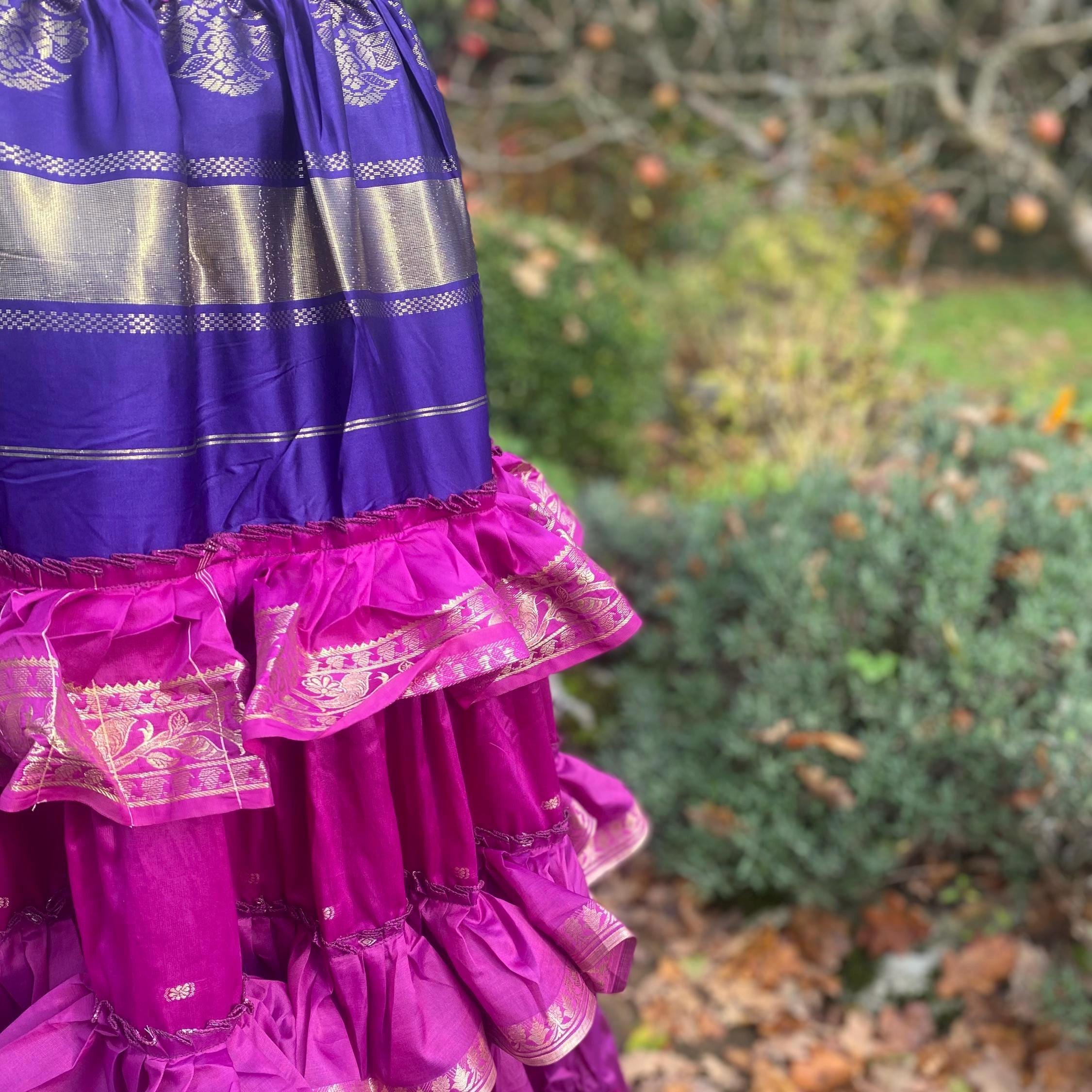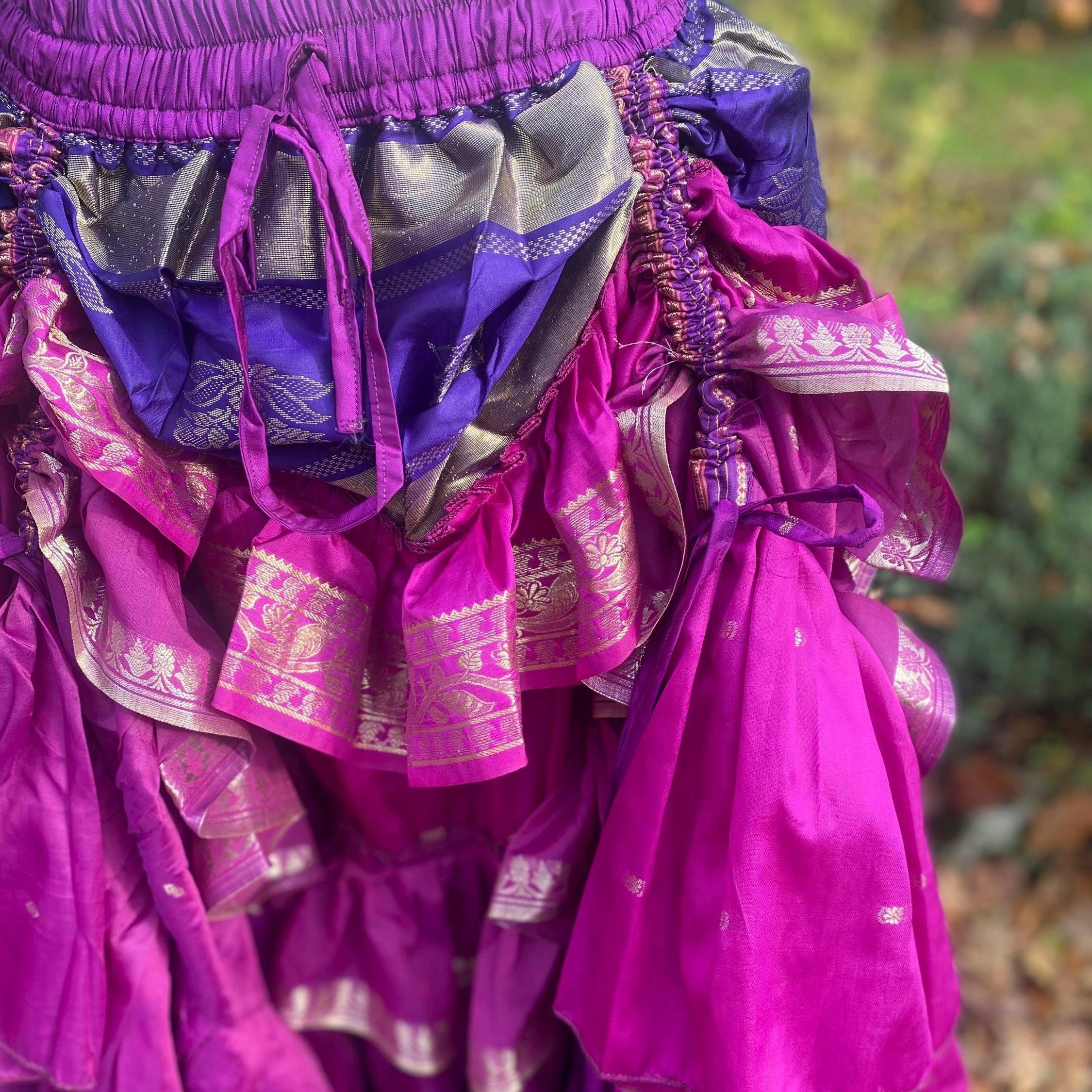 25 Yard Sari Skirt, Pink & Purple Tiered Peasant Style