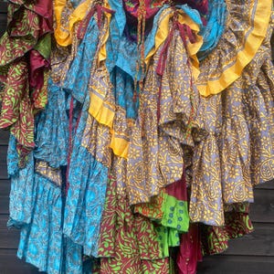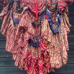 These items have been created from hand picked vintage saris to create unique bohemian skirts. The textiles used to make each garment is different, bringing another chapter to the story these preloved materials. This heritage means there may be small flaws which just add to the beauty of each piece and the garment life story.