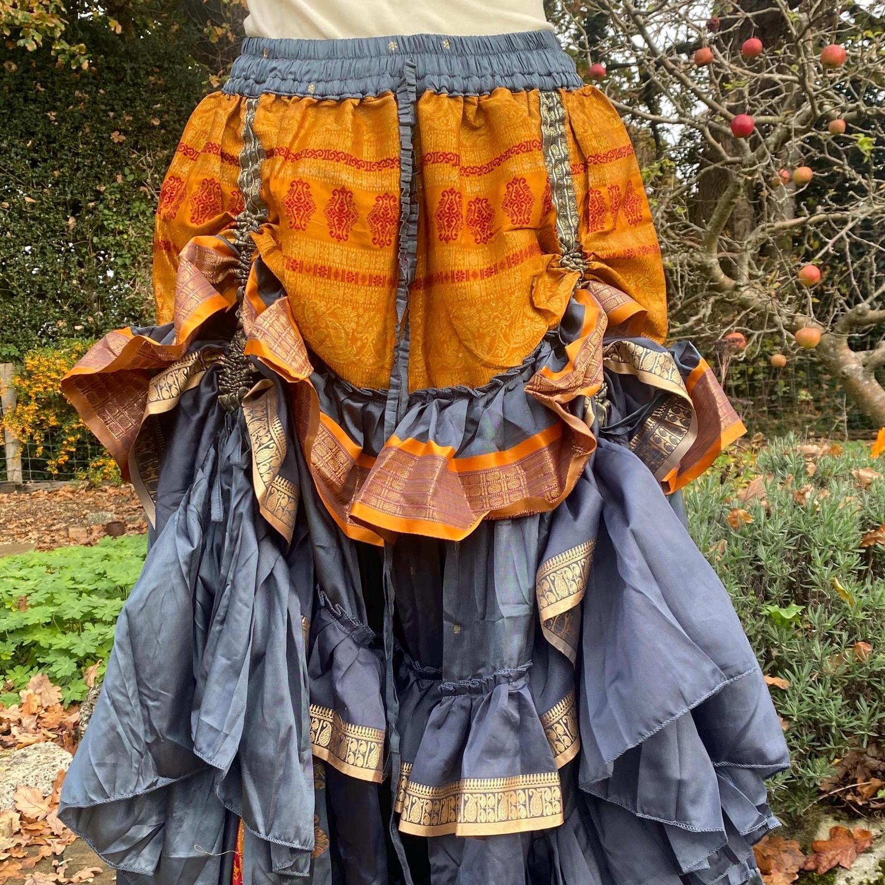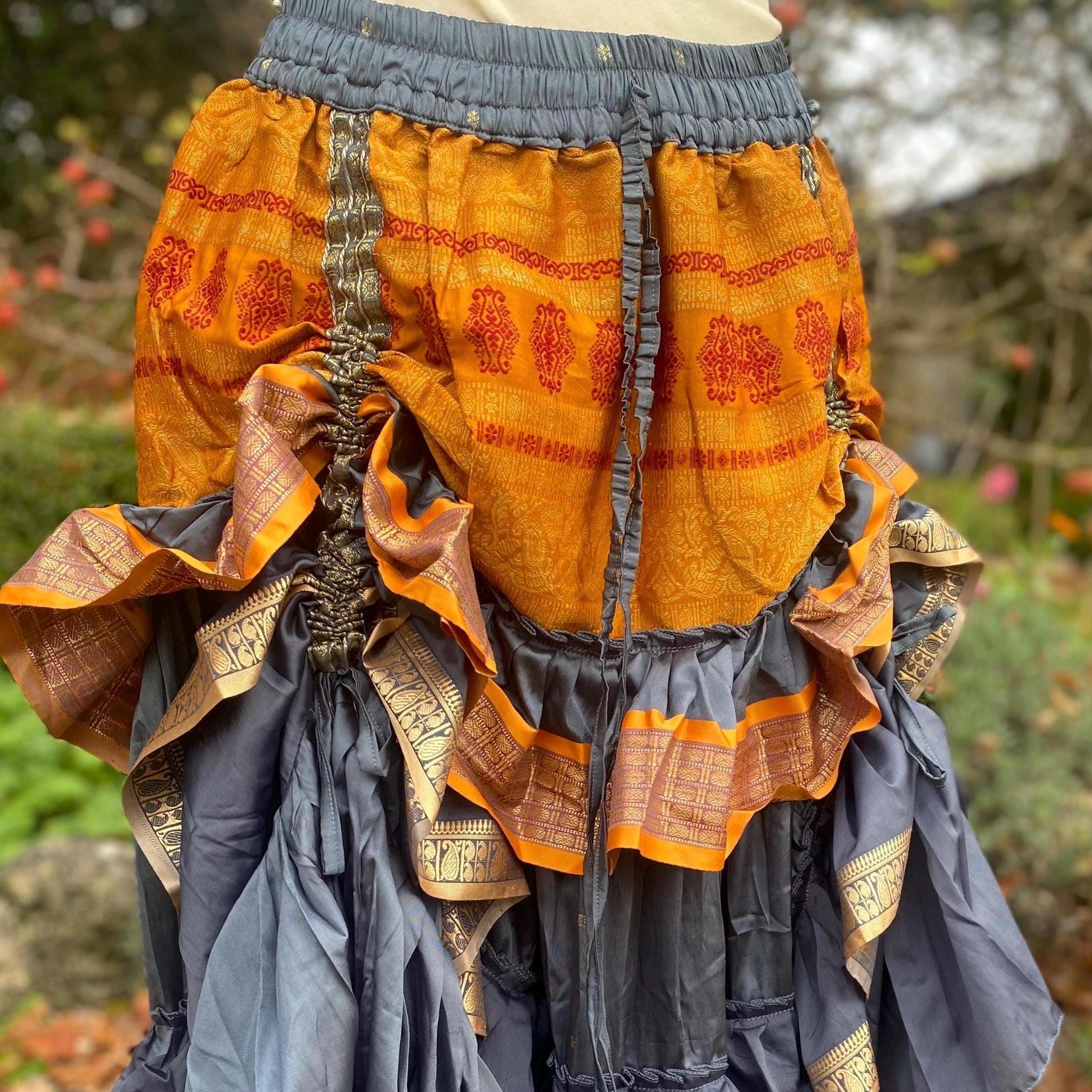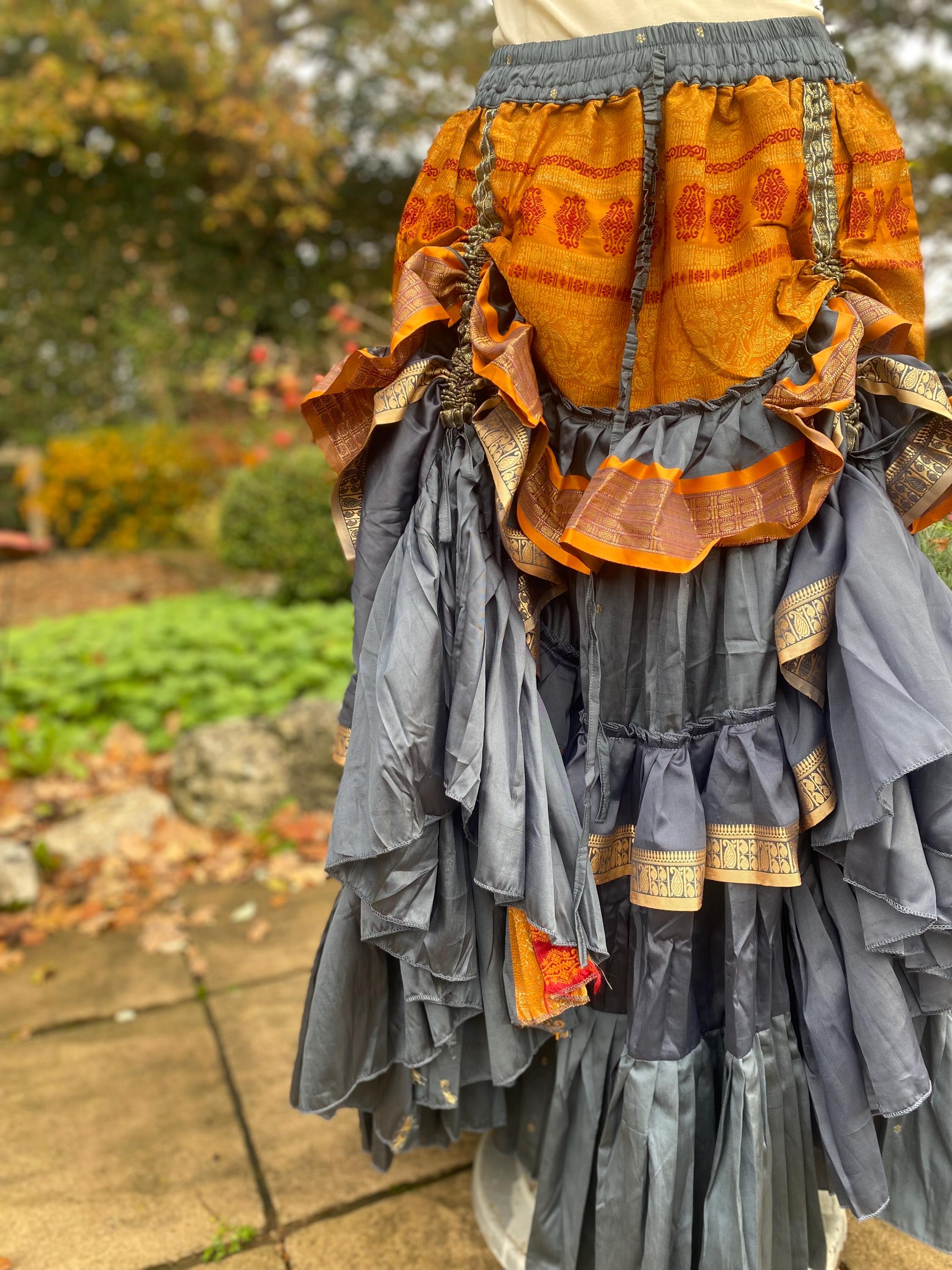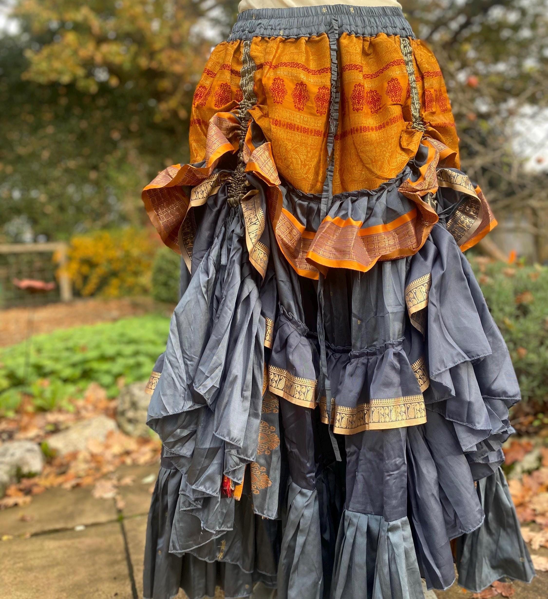 Made using handpicked vintage saris, reusing beautiful materials and creating a unique skirt.