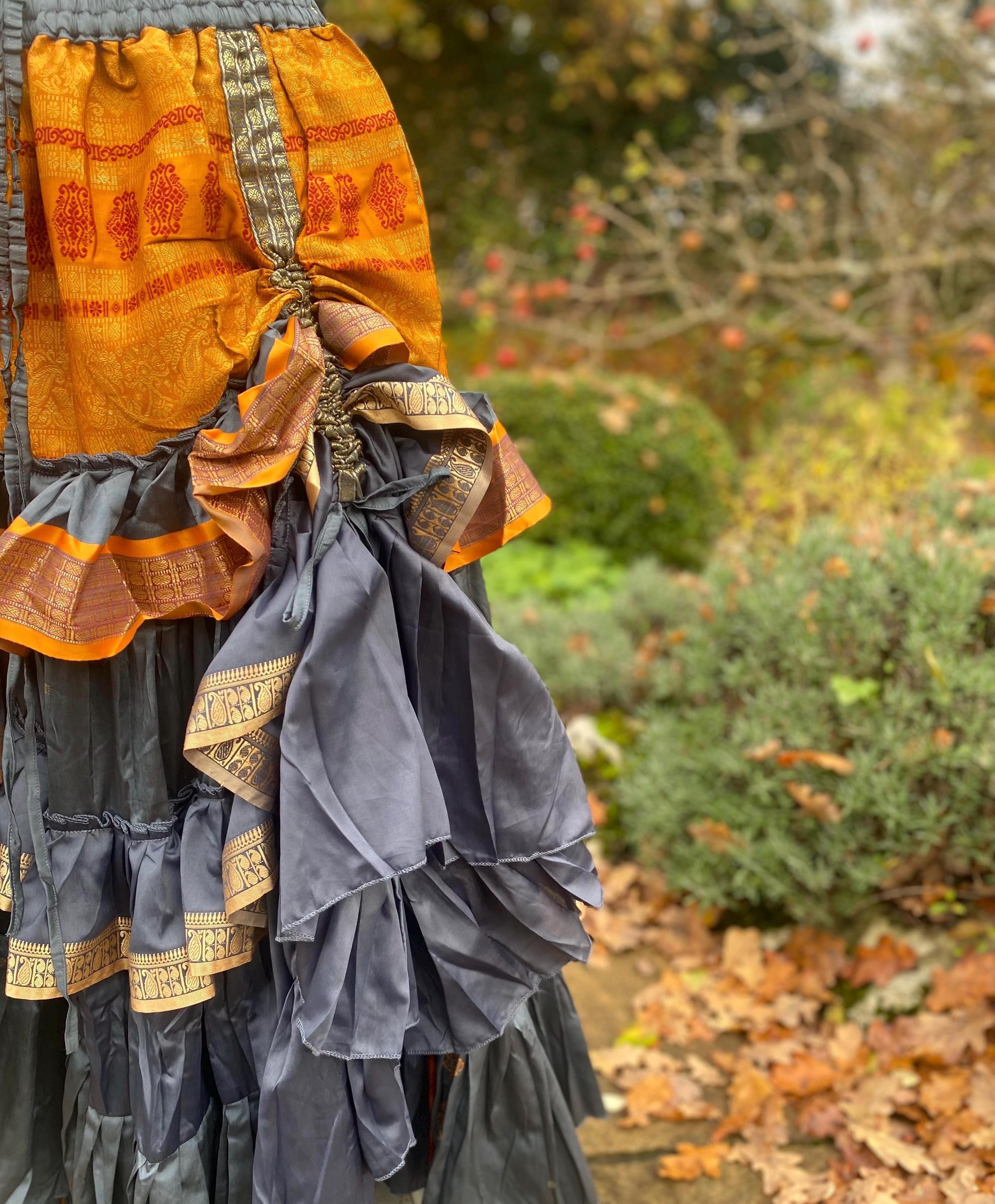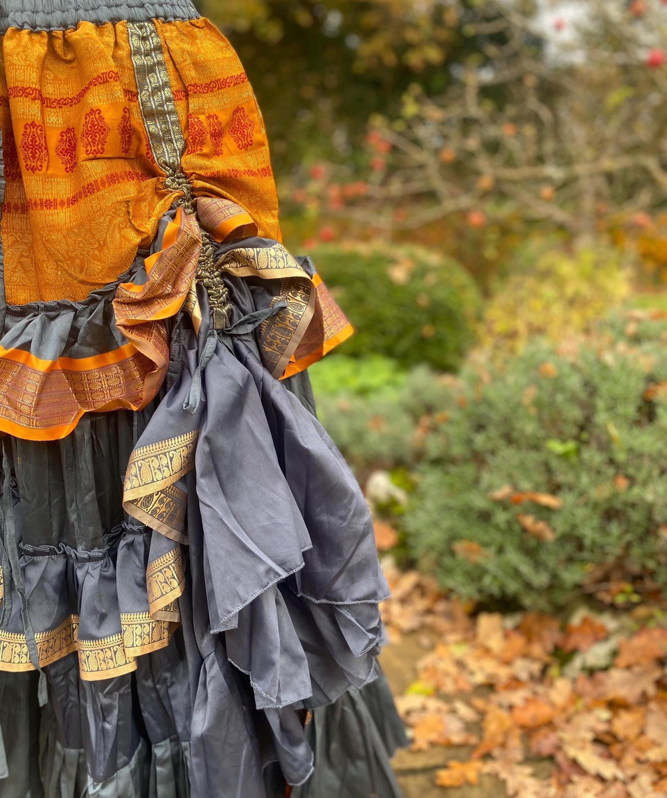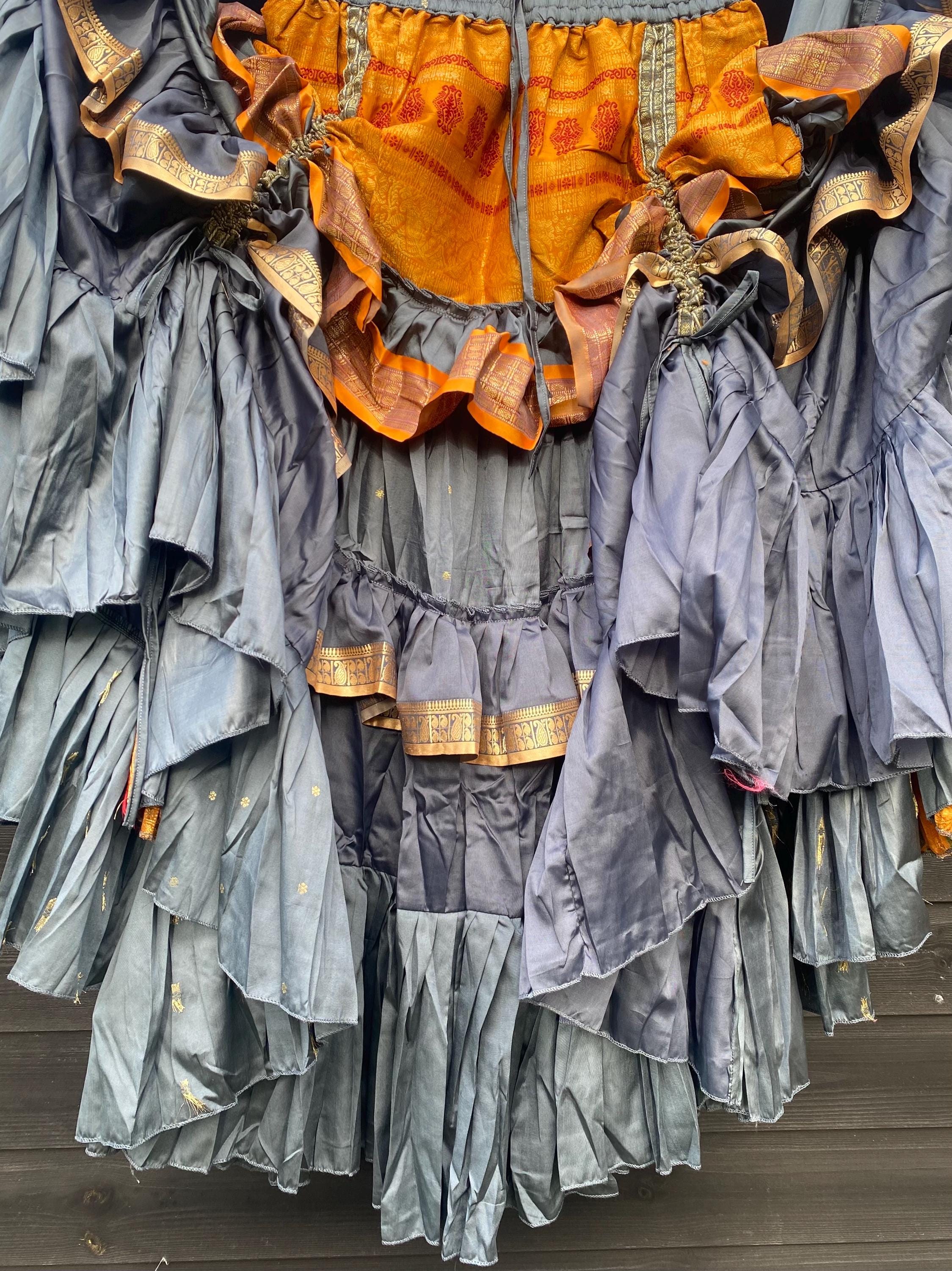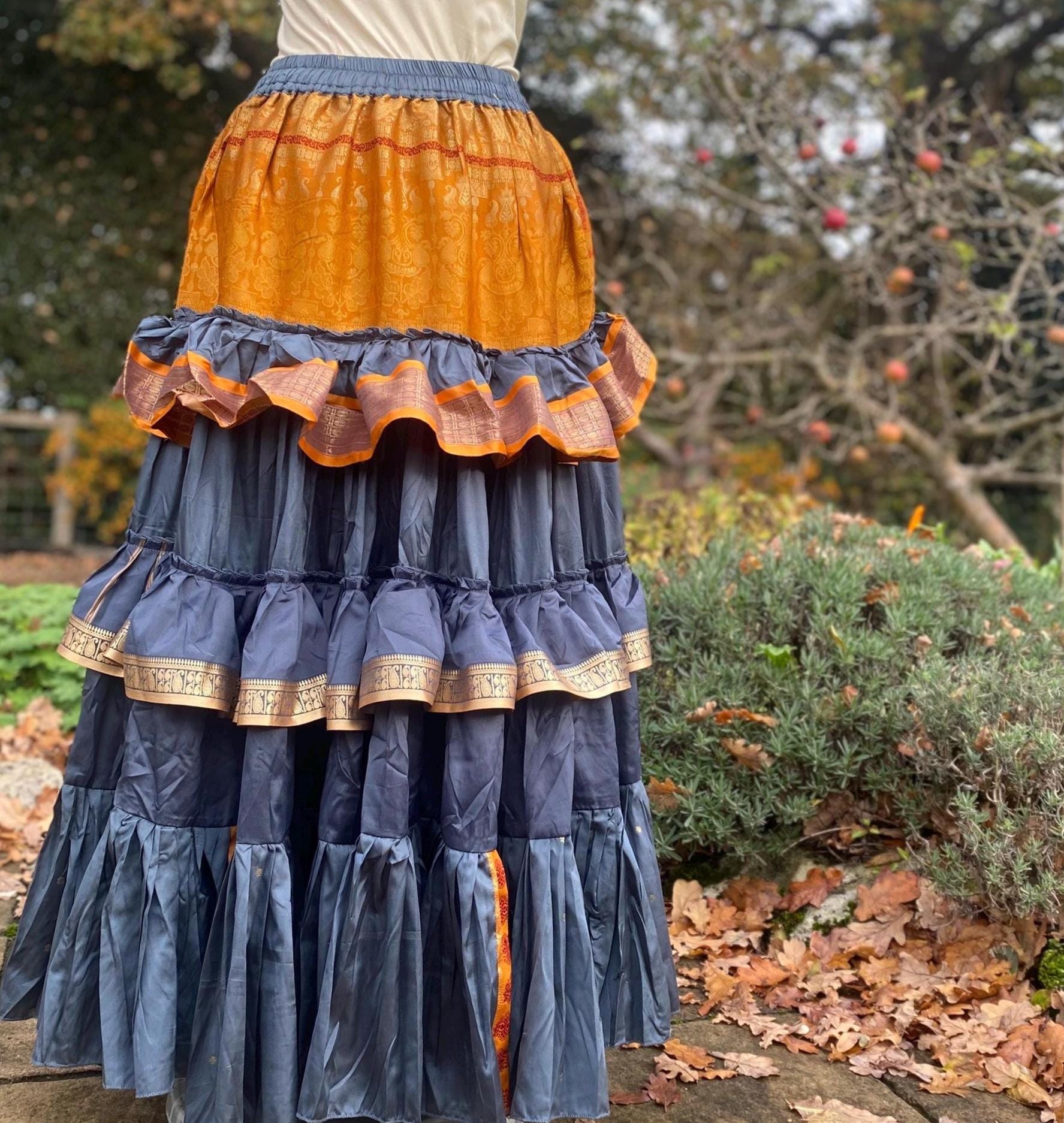 Made using handpicked vintage saris, reusing beautiful materials and creating a unique skirt.