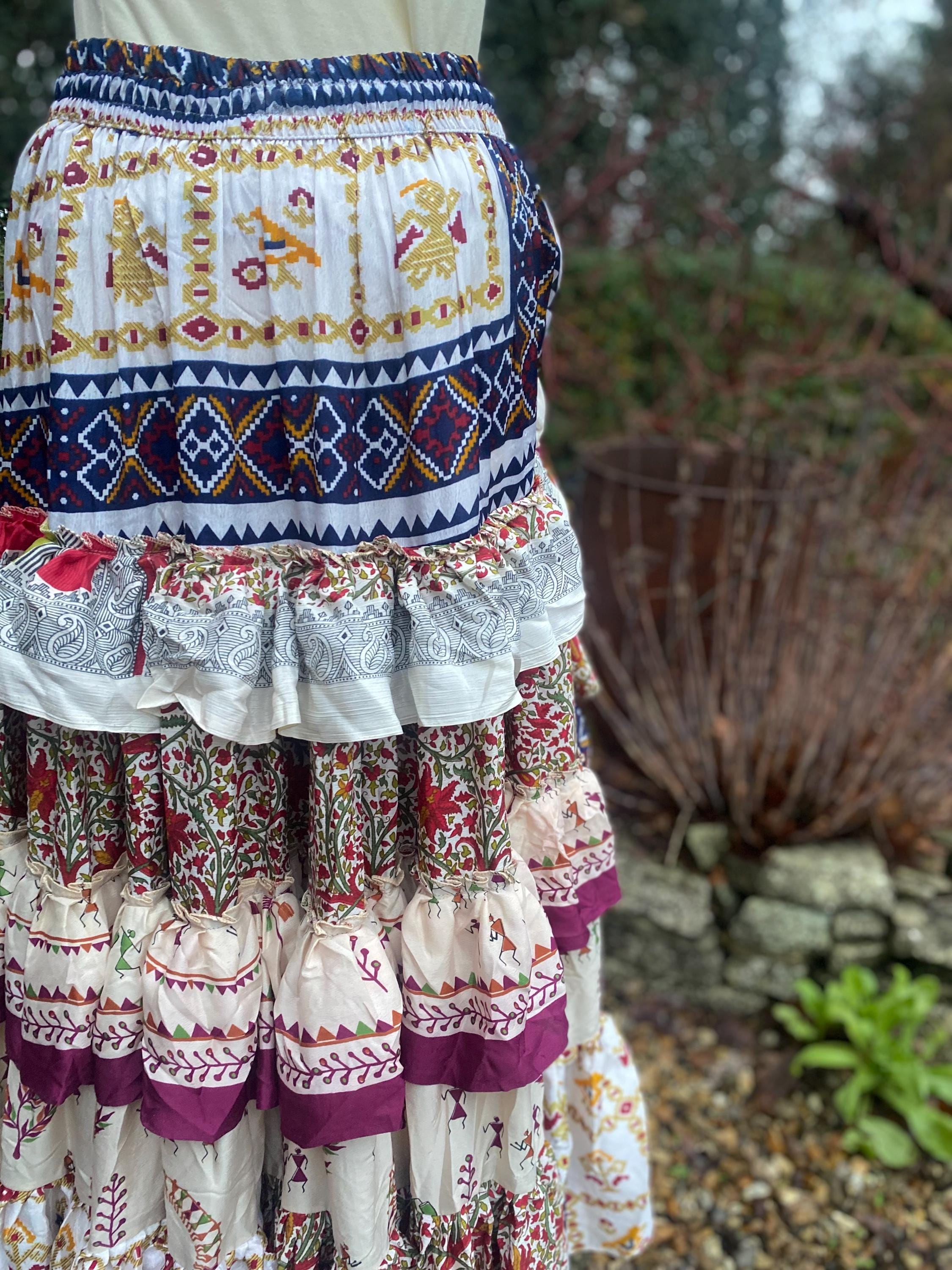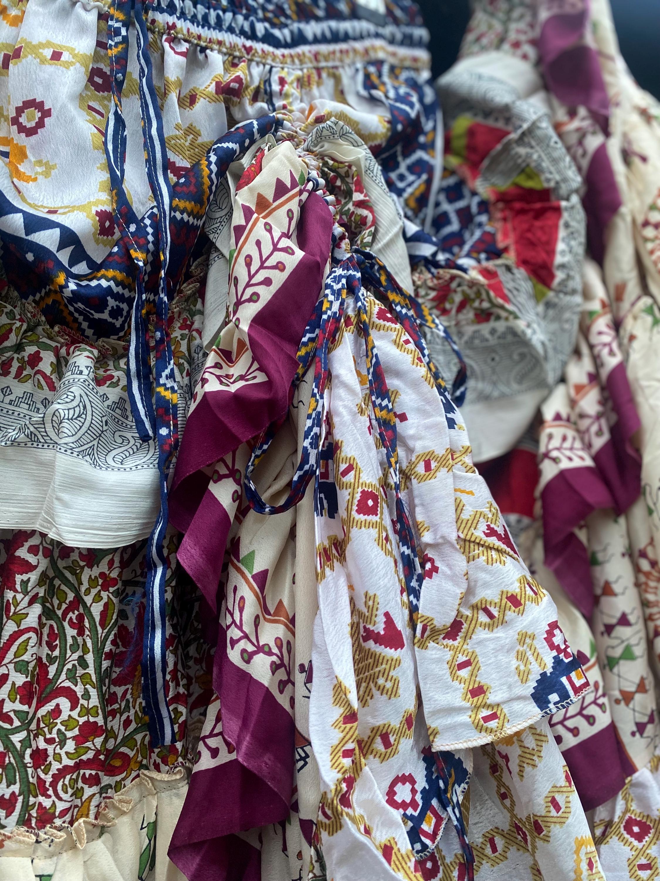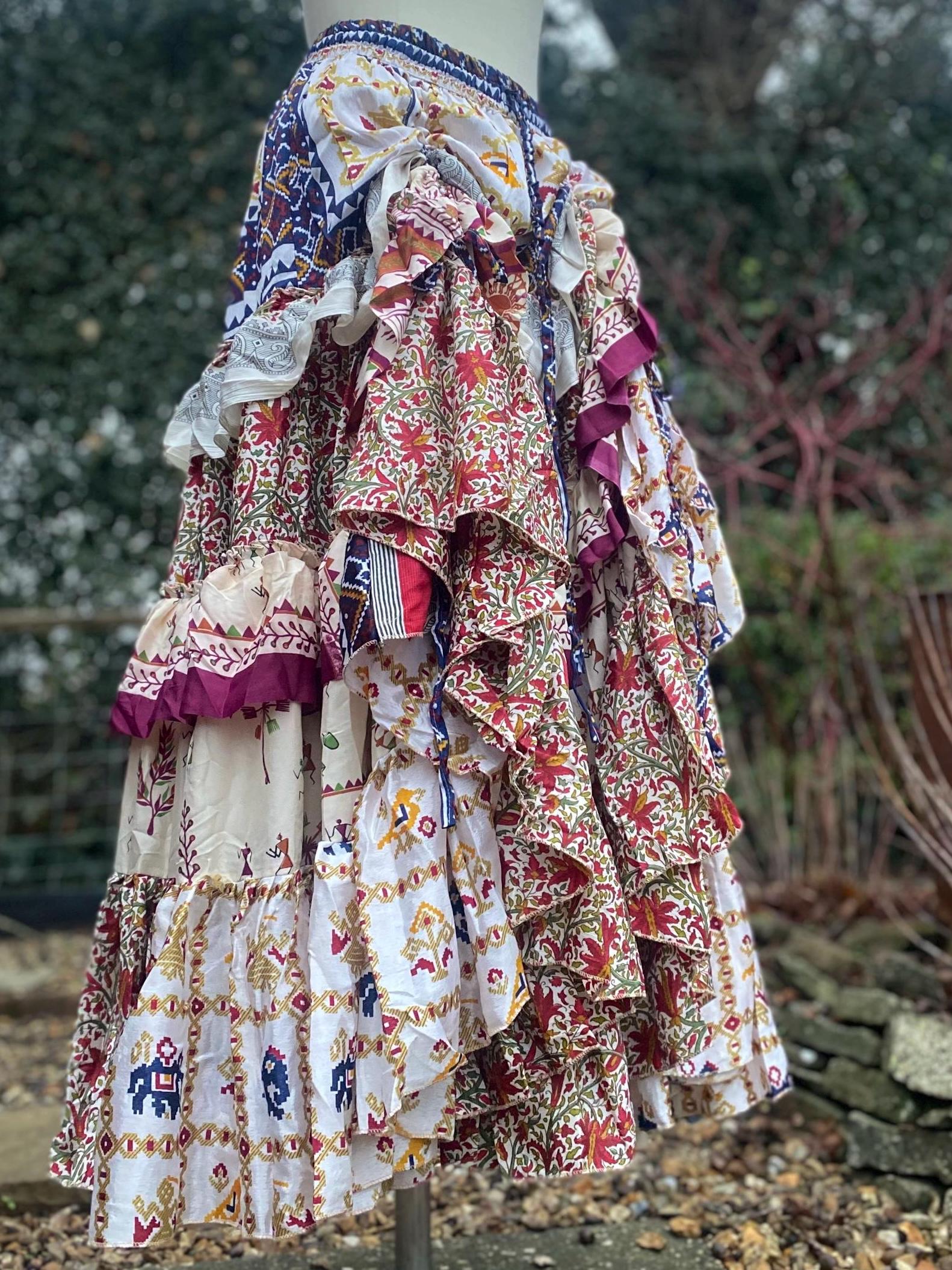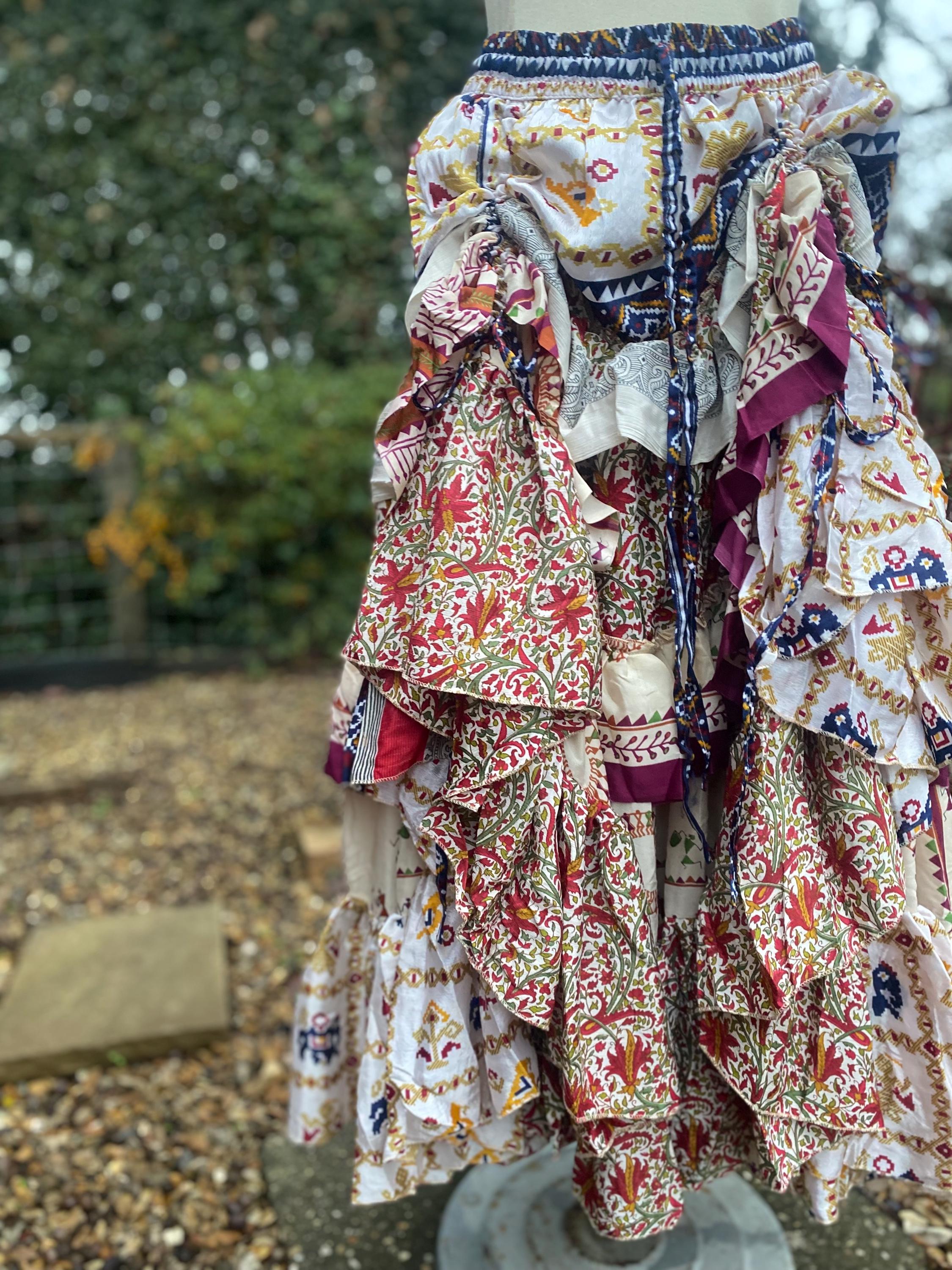 Made using handpicked vintage saris, reusing beautiful materials and creating a unique skirt.