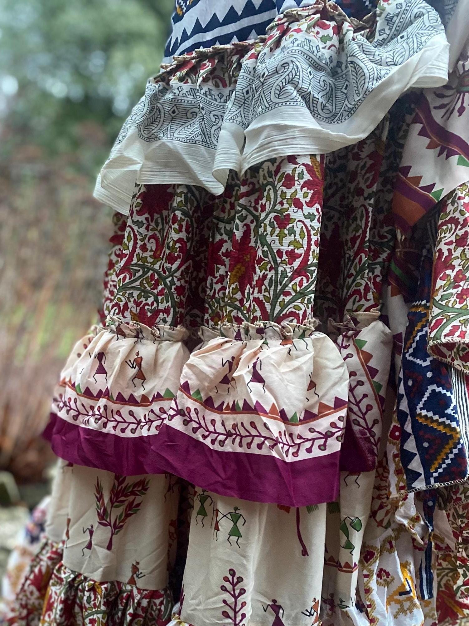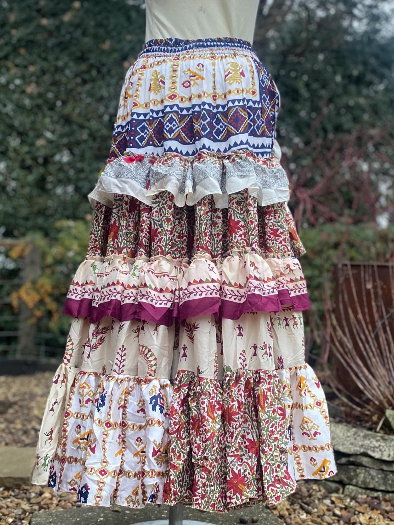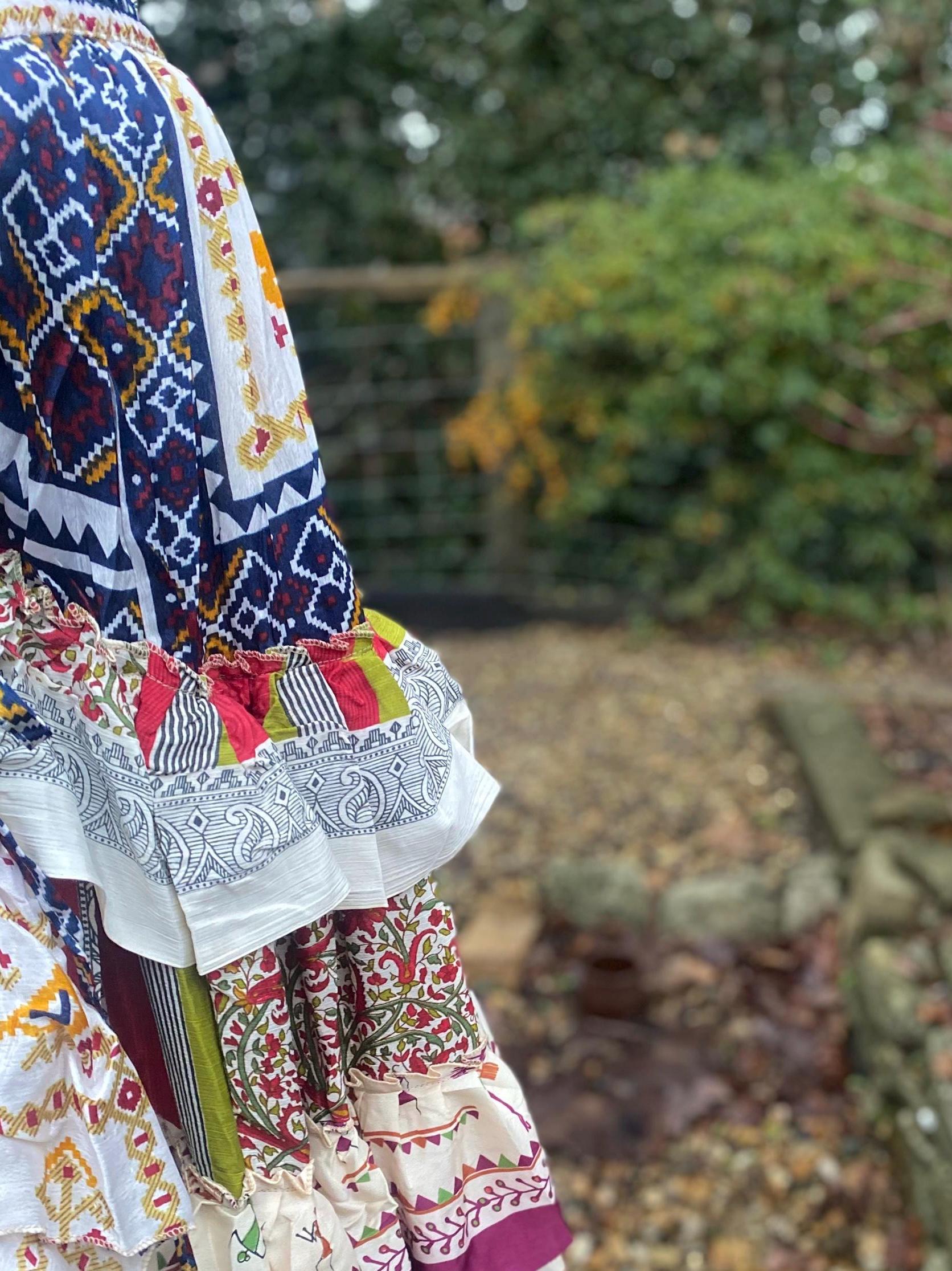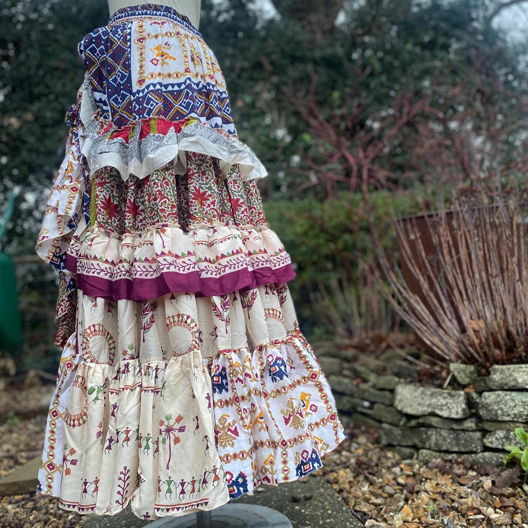 Made using handpicked vintage saris, reusing beautiful materials and creating a unique skirt.
