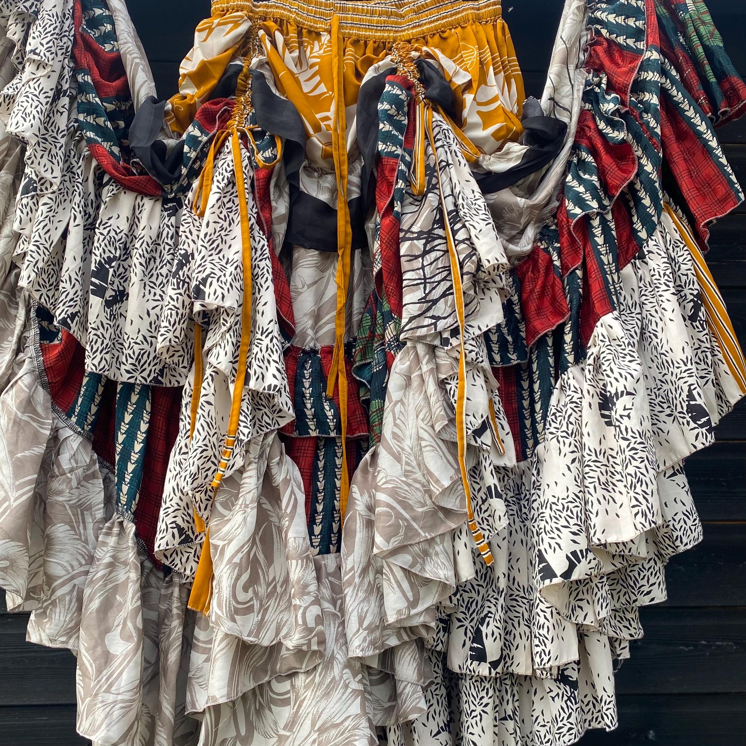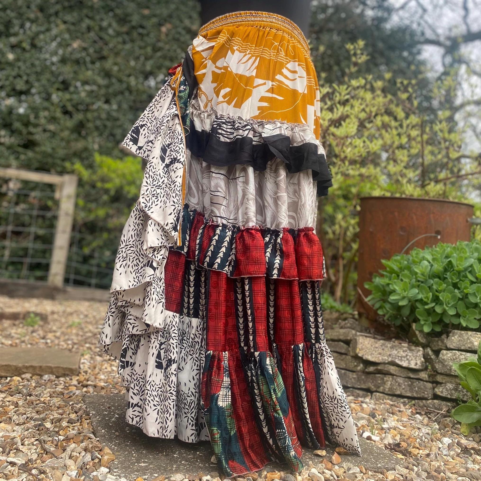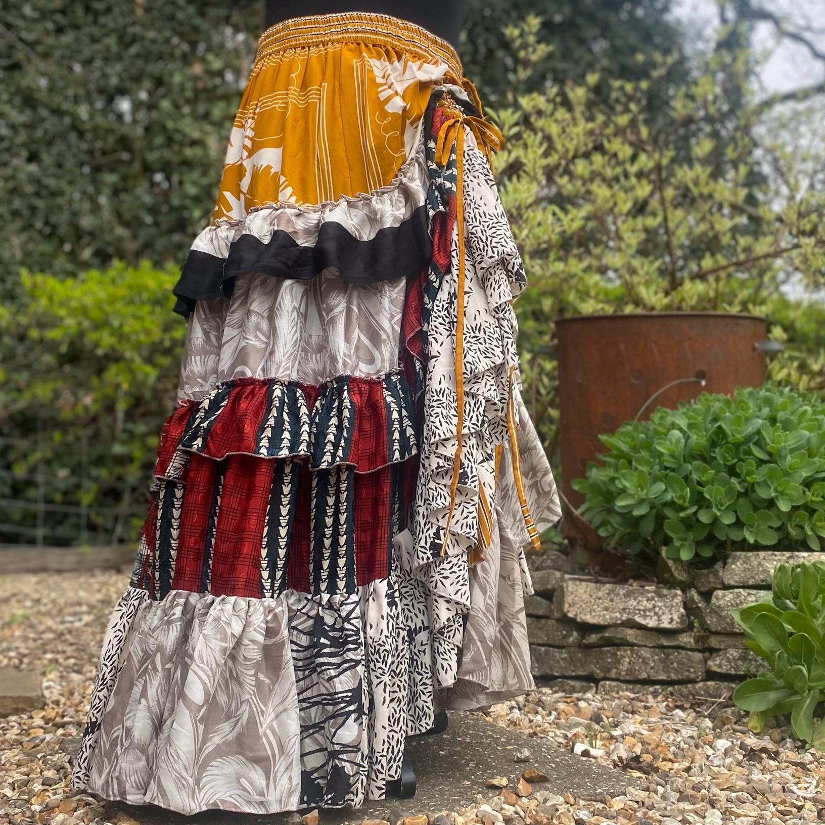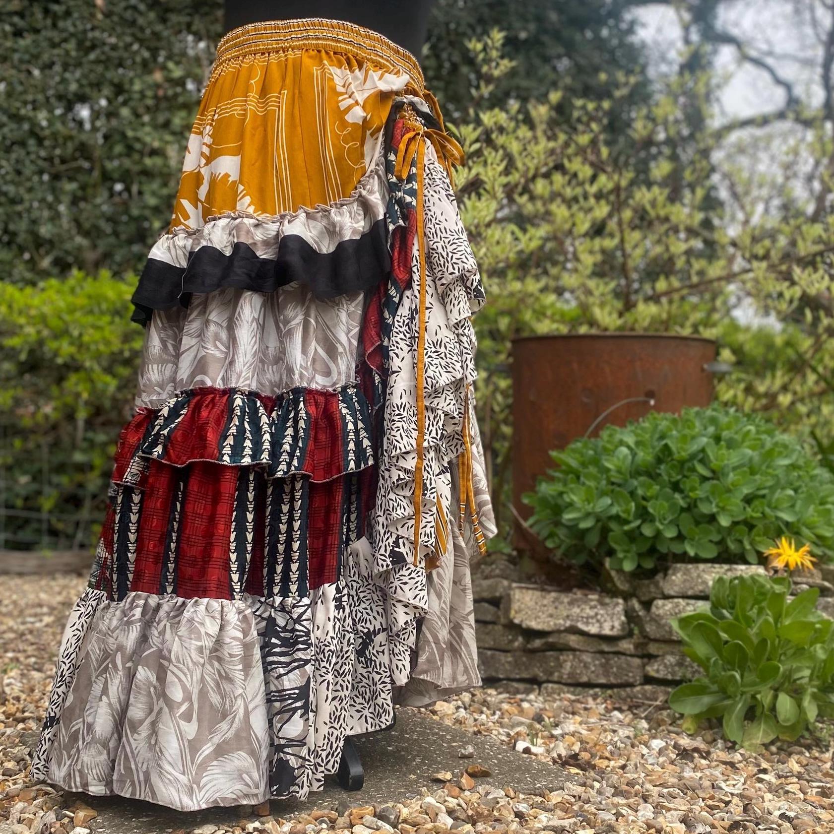 Made using handpicked vintage saris, reusing beautiful materials and creating a unique skirt.
