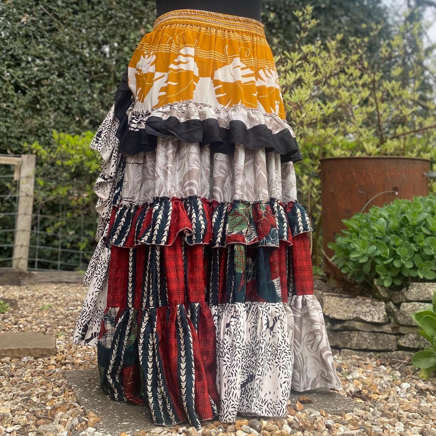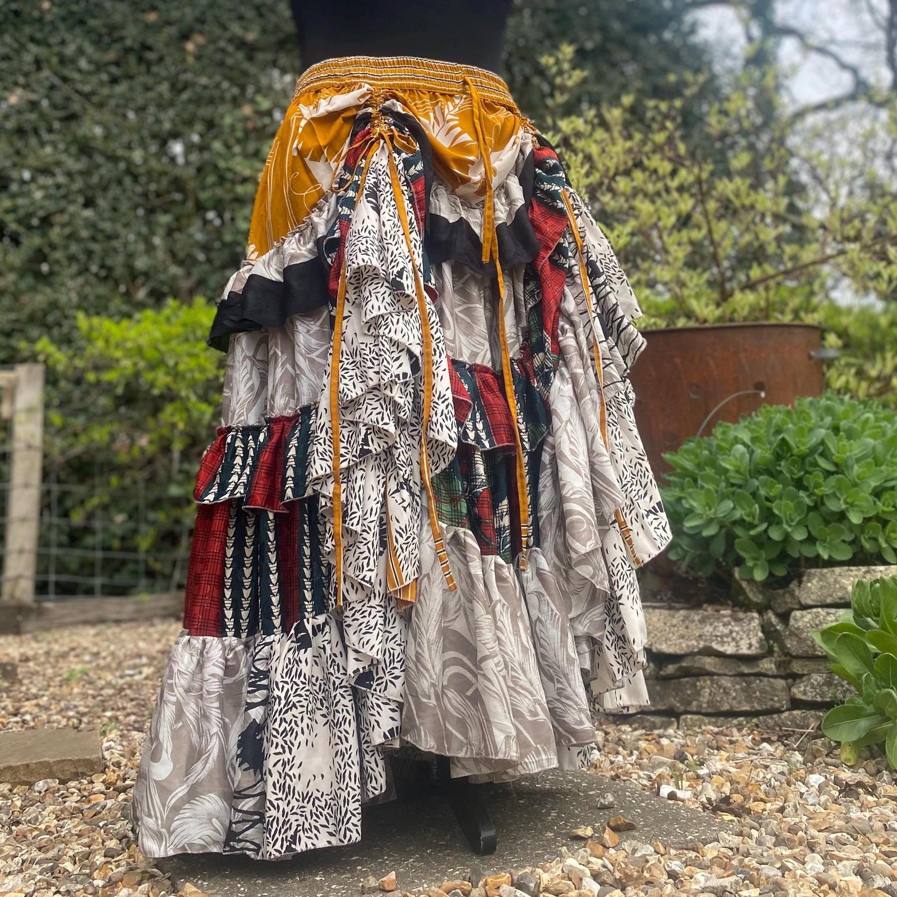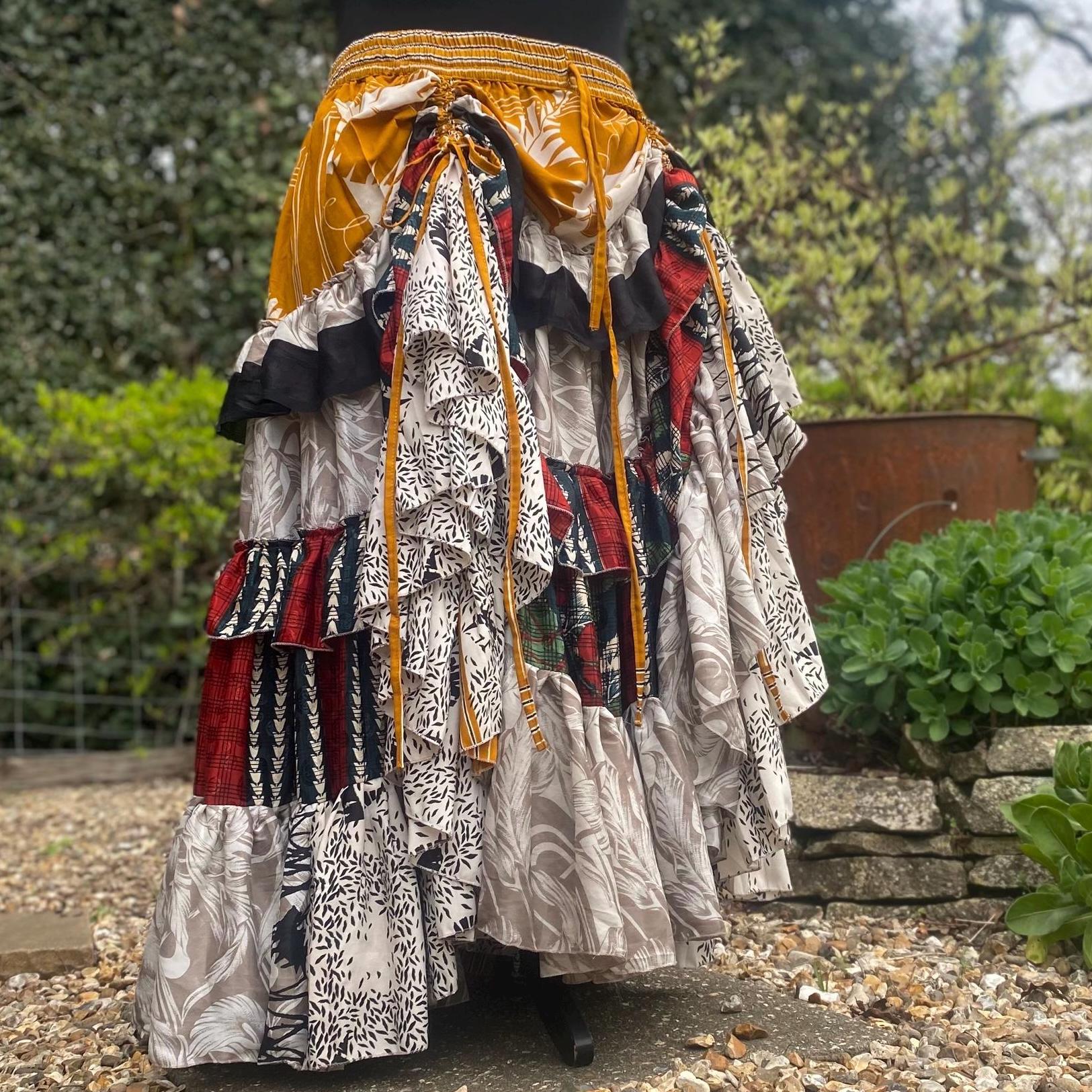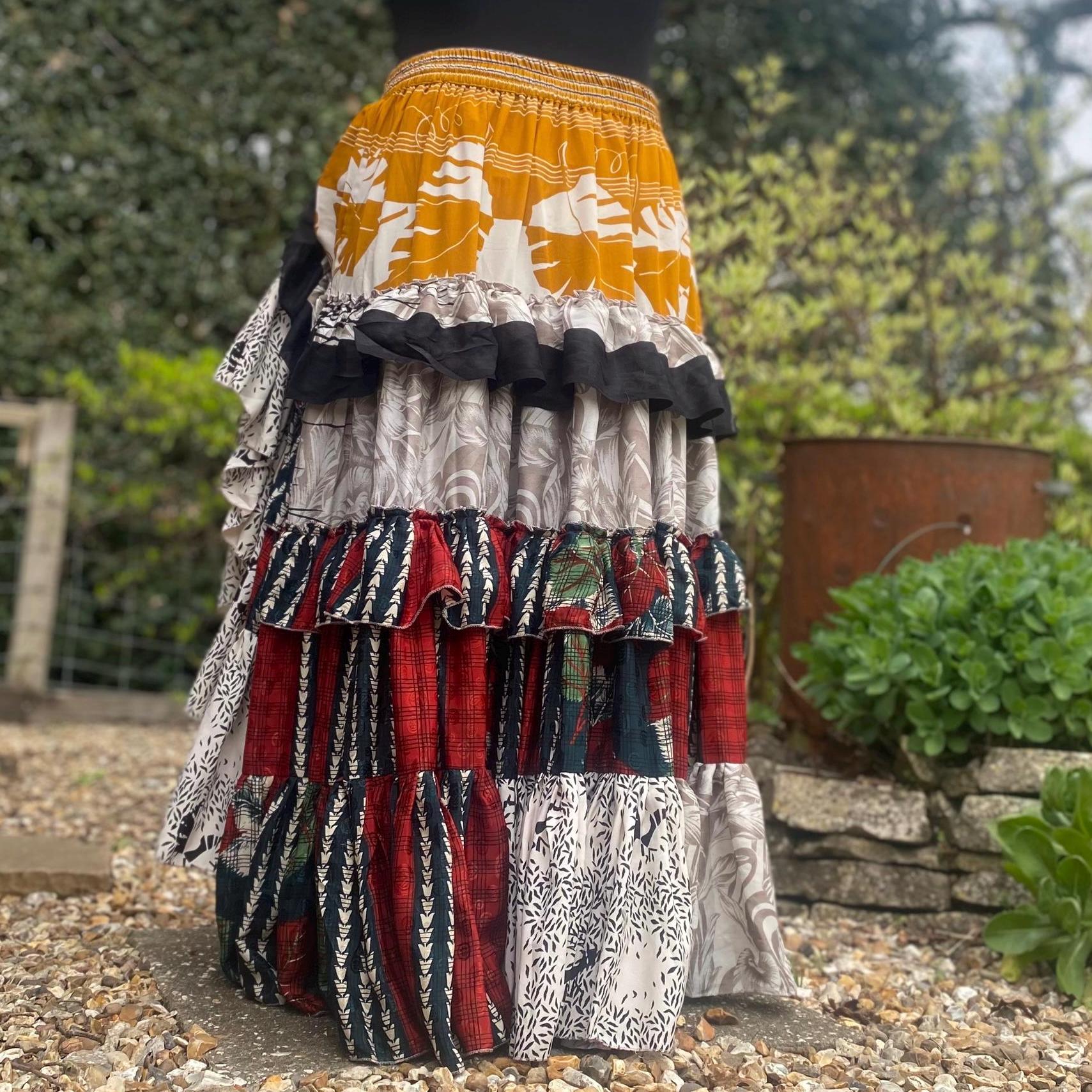 Made using handpicked vintage saris, reusing beautiful materials and creating a unique skirt.