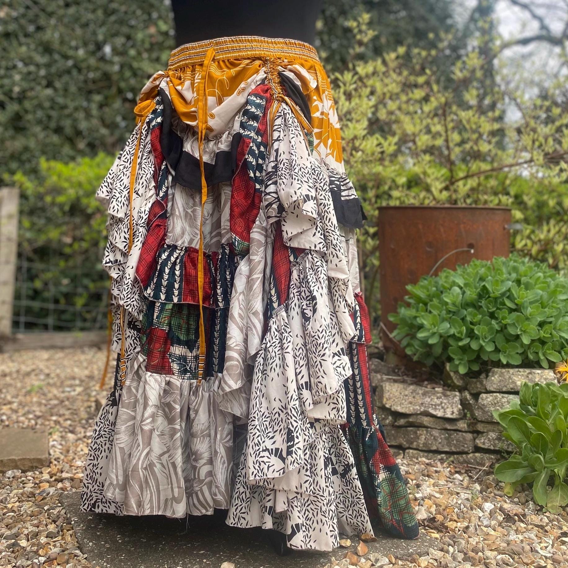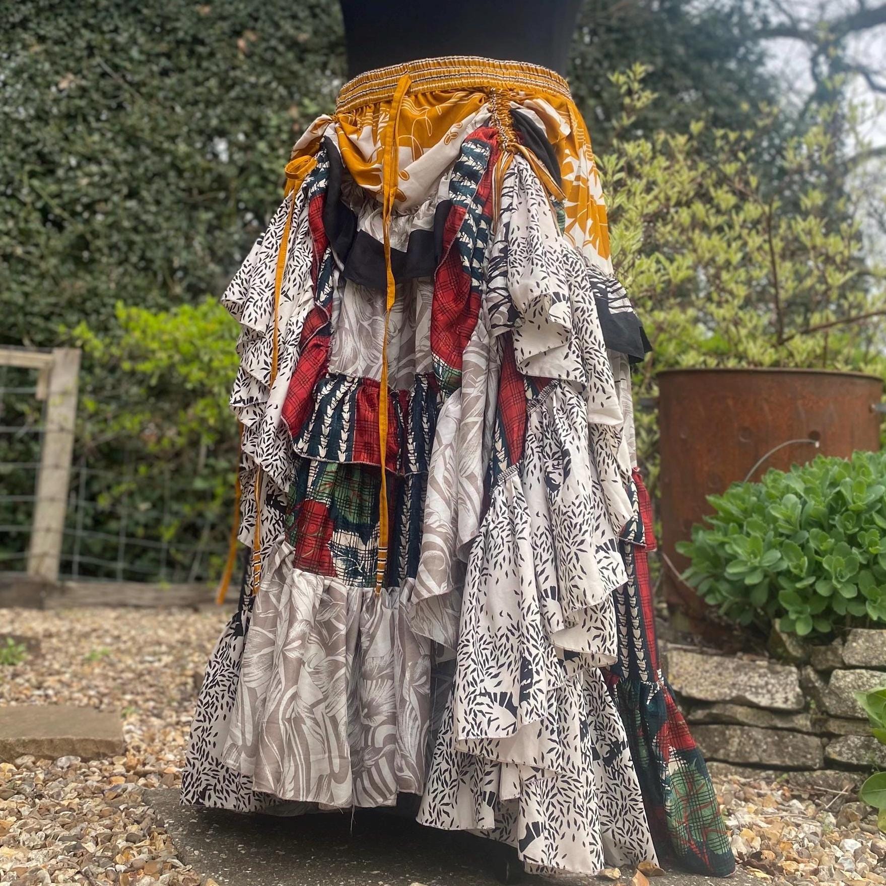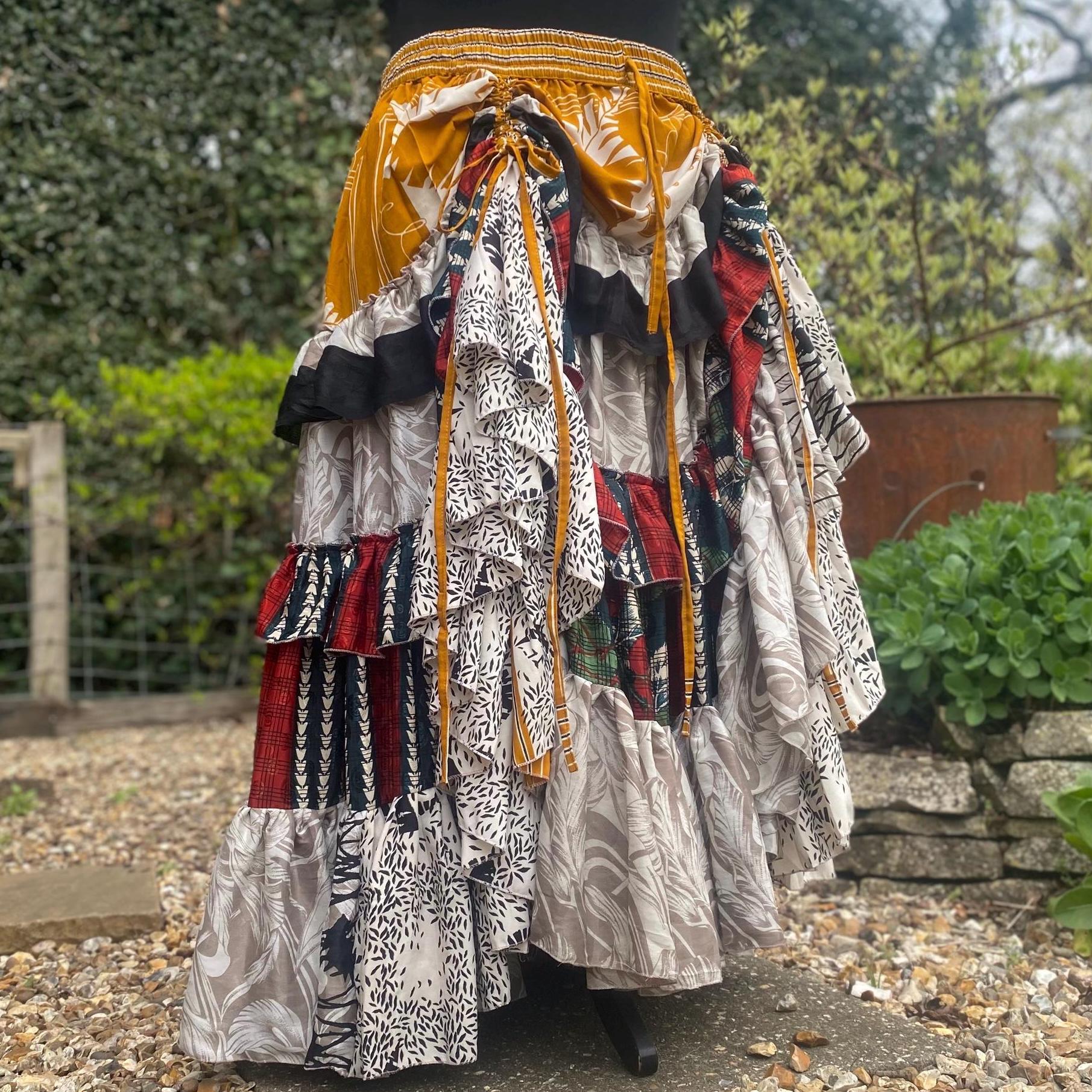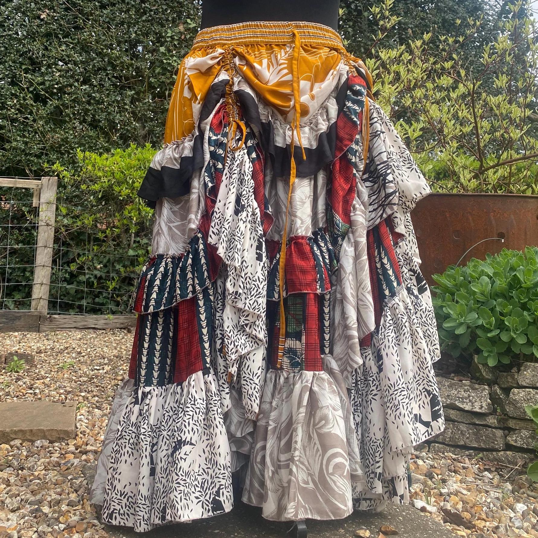 Made using handpicked vintage saris, reusing beautiful materials and creating a unique skirt.